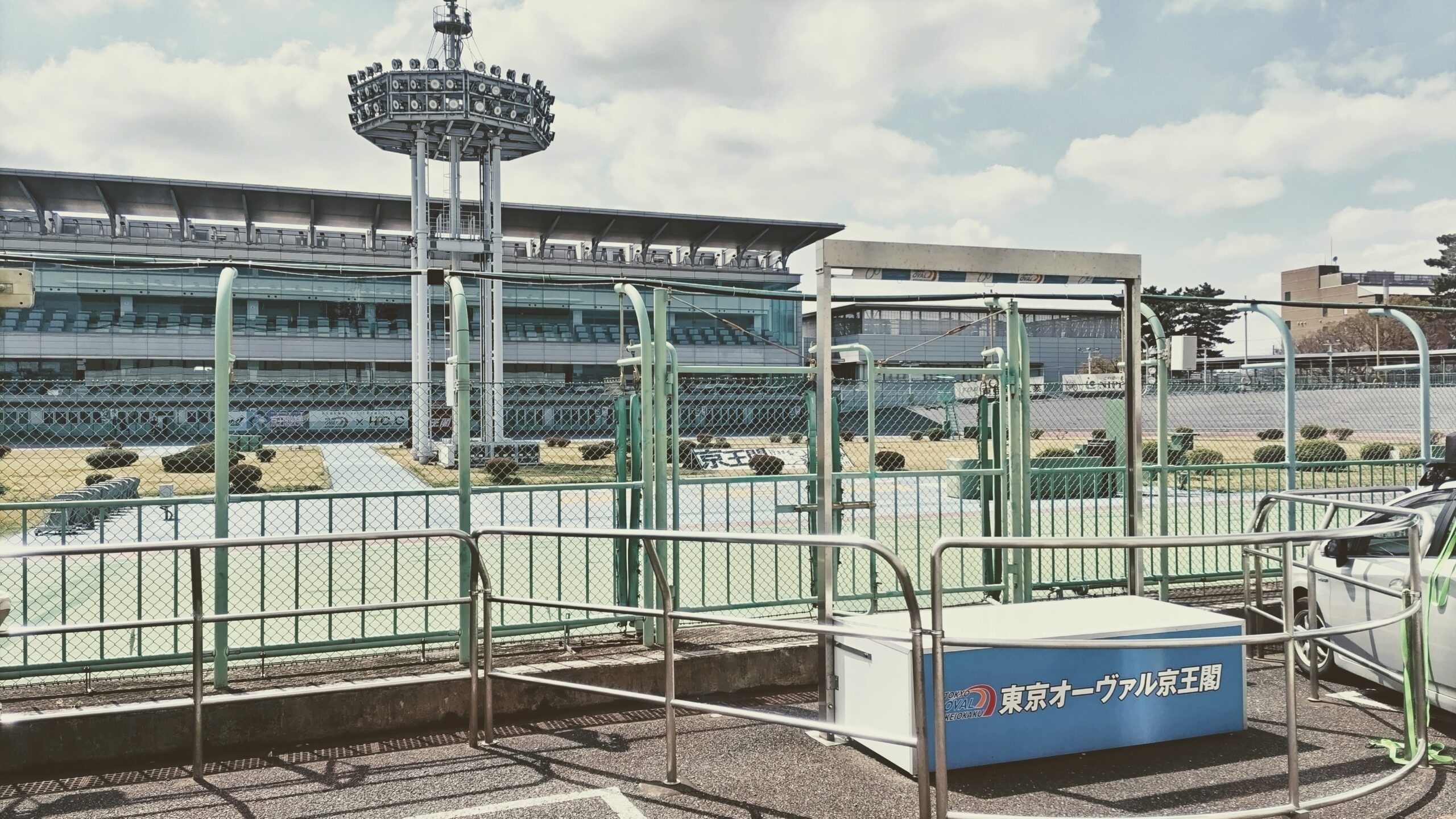 京王多摩川駅の南口(臨時口)を降りてすぐの東京オーヴァル京王閣が会場。なんと競輪場というね。で、レースがない時に施設をイベント会場として利用しているみたい。