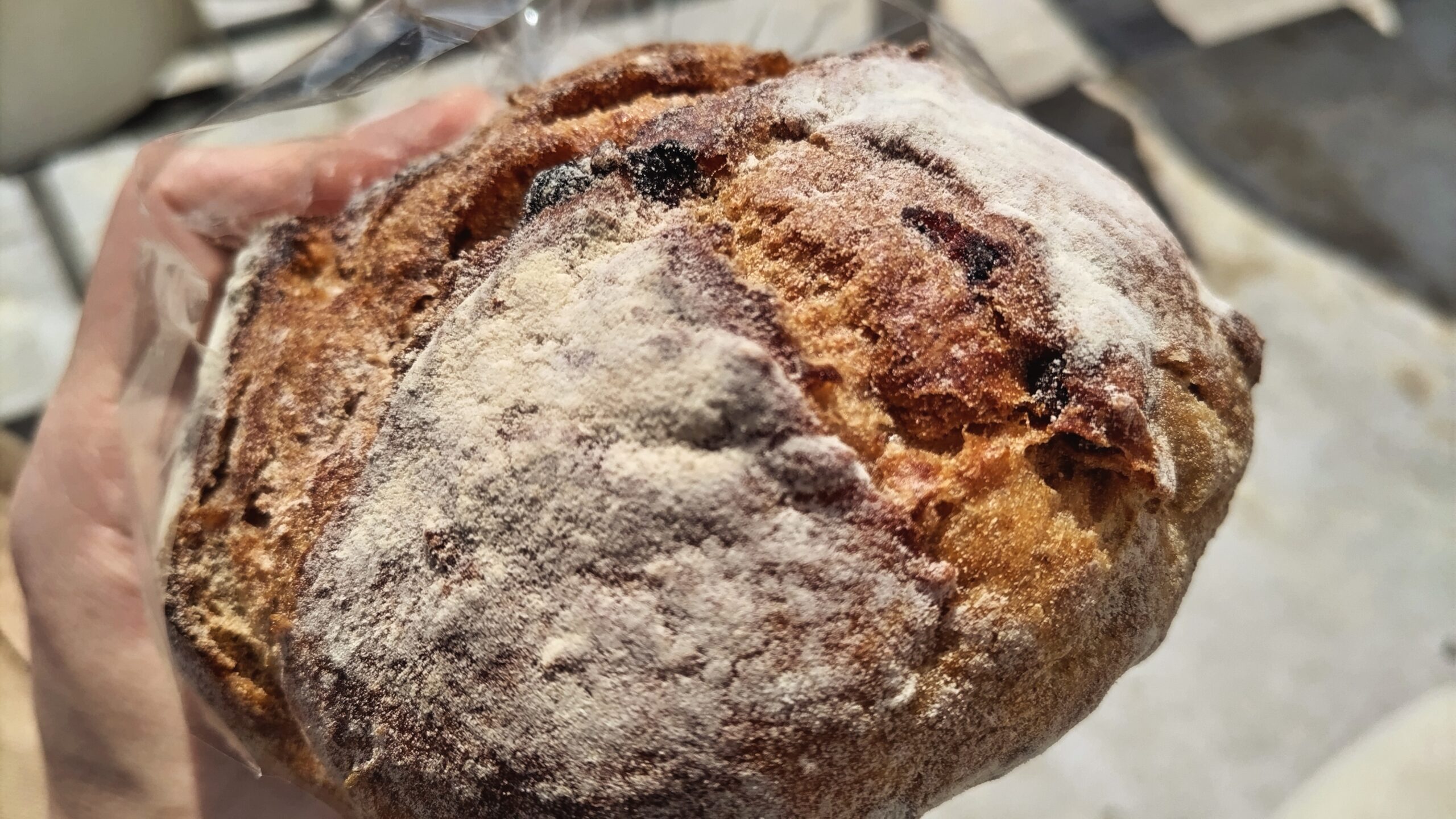 こちら「ドライマスカットのカンパーニュ」。カンパーニュはフランス語で田舎風パンという意味らしい。