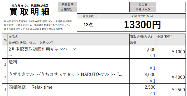 こちらでは、僕が宅配買取を選んだ理由や、実際に利用した際のポイント、明細書を掲載しています。