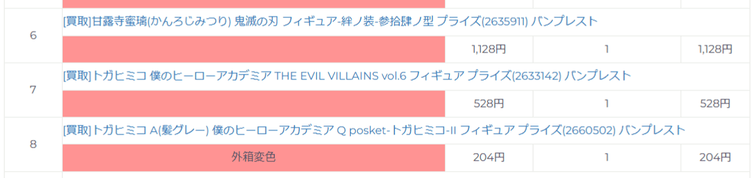 フィギュア買取ネットの明細