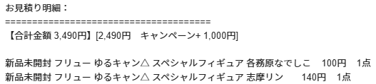 ワンピースの商品が5点あったので、作品キャンペーンで+1000円。